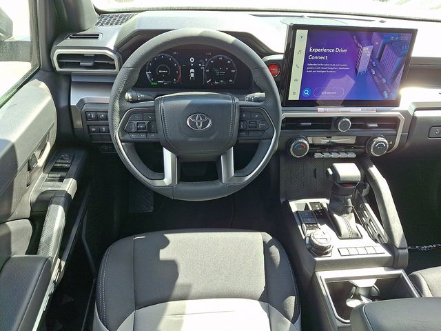 The interior of the Tacoma Hybrid TRD Off Road is designed with your comfort and convenience in mind. The premium audio system with a 14-inch touchscreen display and wireless Apple CarPlay and Android Auto compatibility ensures you can stay connected on the go. The automatic climate control and power windows add to the overall refined driving experience.