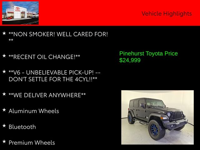 Safety is a top priority, and this Wrangler Unlimited Islander is equipped with a comprehensive suite of advanced safety features, including airbags, traction control, and electronic stability control. You can rest assured that you and your loved ones will be well-protected on every journey.