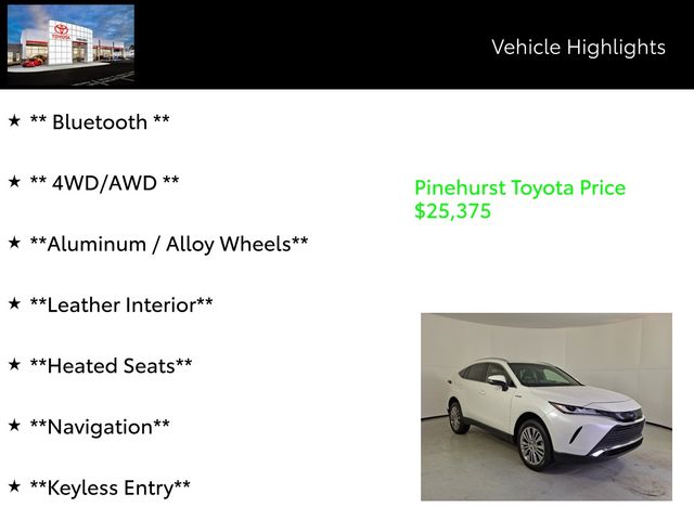 Advertised prices exclude taxes, DMV fees, and $798 dealer fee. All vehicle pricing is subject to change. Time to time in the transfer of data on the internet there are errors, and the dealer is not responsible for errors in advertised price. Prices include all incentives and rebates. All sale prices applicable on day of sale and not in conjunction with any other offers, specials, or sales events. Must finance with SETF at standard rates with approved credit. Advertised prices cannot be used in conjunction with special factory APR programs. Discounts available on in-stock units only. Pinehurst Toyota is not responsible for typographical errors. Stock numbers designate sale vehicles. Art for illustration purposes only. See dealer for complete details.