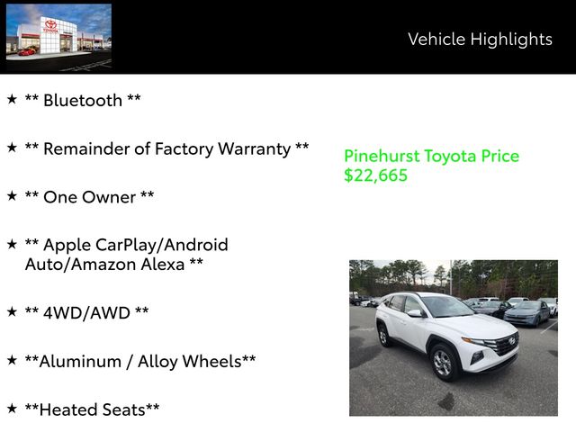 Powered by a 2.5L I4 DGI DOHC 16V engine, this Tucson delivers an impressive 187 horsepower and 28 MPG on the highway, ensuring a smooth and efficient ride. The advanced AWD system provides exceptional traction and control, giving you the confidence to tackle any road conditions with ease.
