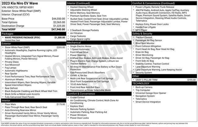 With its striking design, cutting-edge technology, and exceptional efficiency, the 2023 Kia Niro EV Wave is a true standout in the electric vehicle market. Experience the difference for yourself and schedule a test drive today. We're confident you'll be impressed by this remarkable Kia Certified Pre-Owned offering.