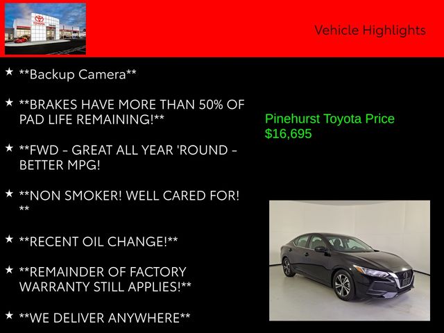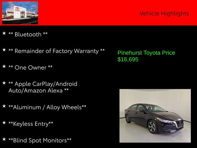 With its one-owner history, recent oil change, and the remainder of the factory warranty still in effect, this 2023 Nissan Sentra SV represents an exceptional value proposition. We're confident that this vehicle will provide years of reliable and enjoyable ownership, and we're proud to offer it to you today.