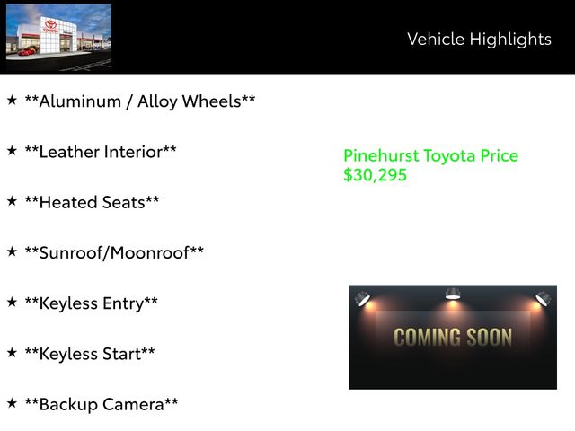 Advertised prices exclude taxes, DMV fees, and $798 dealer fee. All vehicle pricing is subject to change. Time to time in the transfer of data on the internet there are errors, and the dealer is not responsible for errors in advertised price. Prices include all incentives and rebates. All sale prices applicable on day of sale and not in conjunction with any other offers, specials, or sales events. Must finance with SETF at standard rates with approved credit. Advertised prices cannot be used in conjunction with special factory APR programs. Discounts available on in-stock units only. Pinehurst Toyota is not responsible for typographical errors. Stock numbers designate sale vehicles. Art for illustration purposes only. See dealer for complete details.