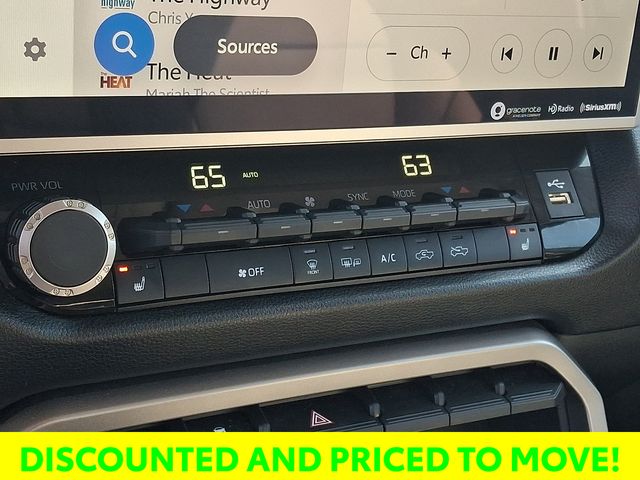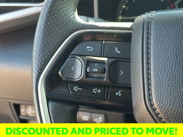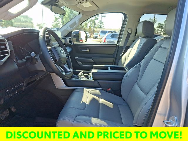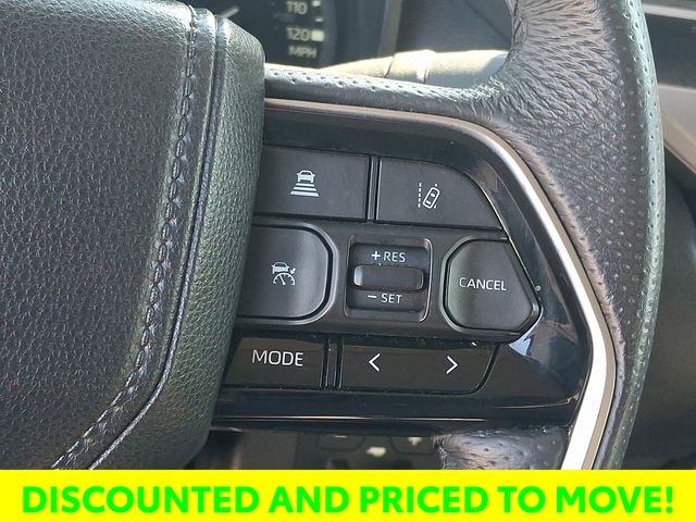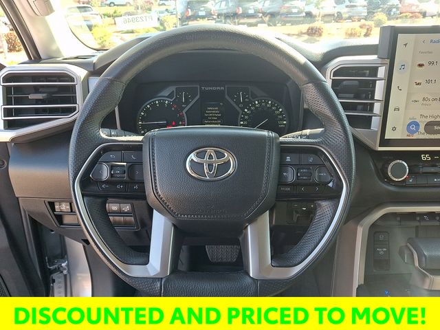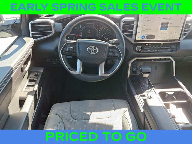 The premium audio system with a 14-inch touchscreen, 9 speakers, and compatibility with Android Auto, Apple CarPlay, and SiriusXM, ensures you'll enjoy every mile behind the wheel. The Leather Steering Wheel and Heated Power Black Outside Mirrors with LED turn signals and Blind Spot Monitor further enhance the Tundra's premium features.