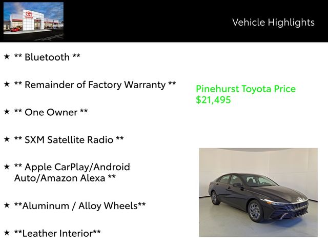 This Elantra Hybrid is not only efficient but also packed with premium features that elevate your driving experience. Enjoy the convenience of Bluetooth connectivity, Apple CarPlay, and Android Auto, as well as the added security of a backup camera and keyless entry and start. The leather-wrapped interior and alloy wheels provide a touch of elegance, while the SXM satellite radio and premium sound system keep you entertained on every journey.