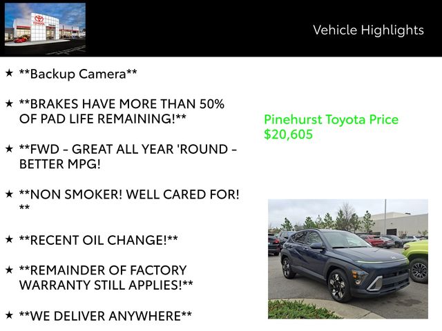 Experience the confidence and convenience of this exceptional 2025 Hyundai Kona SEL. Schedule a test drive today and discover why this compact SUV is the perfect fit for your lifestyle.