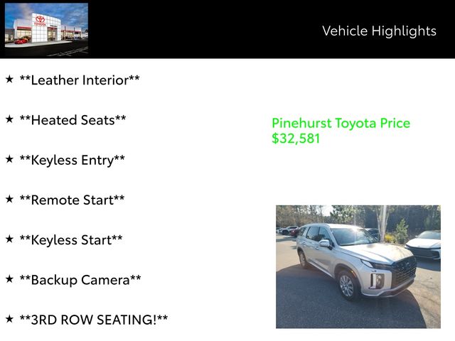 Beyond its exceptional capabilities, this Palisade is packed with a wealth of premium features that cater to your every need. Indulge in the comfort of heated leather seats, the convenience of a power liftgate, and the advanced technology of a Navigation System, Apple CarPlay, and Android Auto. The Palisade's spacious and versatile interior, with seating for up to 8 passengers, ensures that every journey is tailored to your lifestyle.