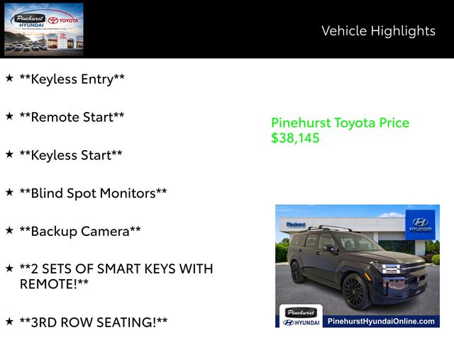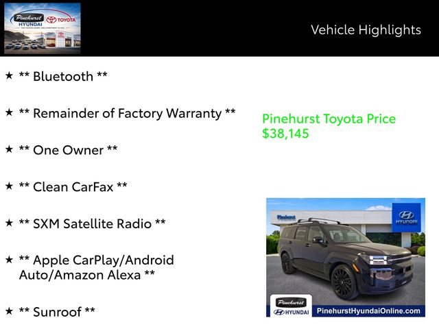 Advertised prices exclude taxes, DMV fees, $249 electronic tag fee and $798 dealer fee. All vehicle pricing is subject to change. Time to time in the transfer of data on the internet there are errors, and the dealer is not responsible for errors in advertised price. Prices include all incentives and rebates. All sale prices applicable on day of sale and not in conjunction with any other offers, specials, or sales events. Must finance with SETF at standard rates with approved credit. Advertised prices cannot be used in conjunction with special factory APR programs. Discounts available on in-stock units only. Pinehurst Toyota is not responsible for typographical errors. Stock numbers designate sale vehicles. Art for illustration purposes only. See dealer for complete details.