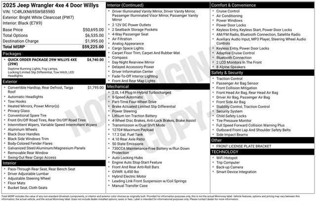 Whether you're seeking the ultimate adventure or simply a versatile and capable SUV for your daily commute, the 2025 Jeep Wrangler Willys 4xe is the perfect choice. Experience the perfect blend of off-road prowess and modern technology in this remarkable vehicle.