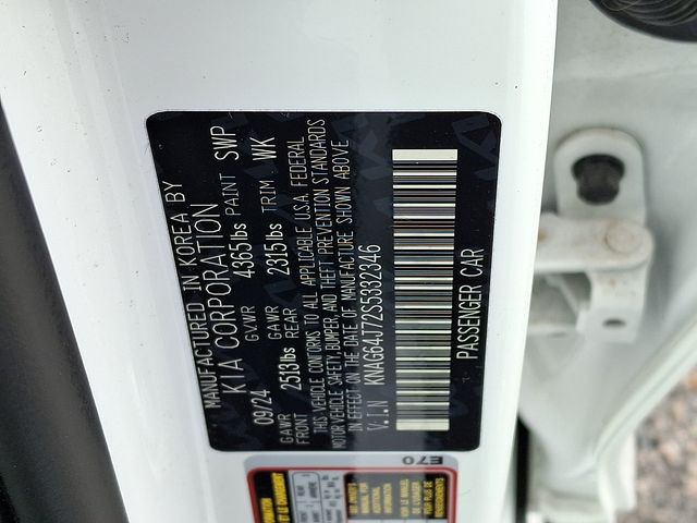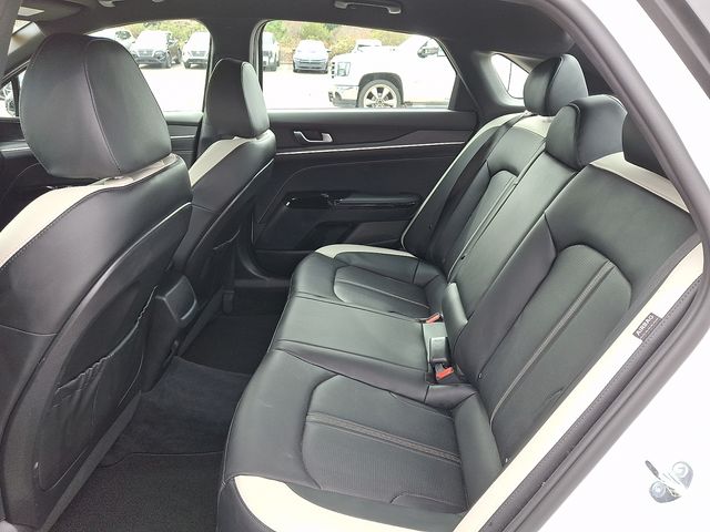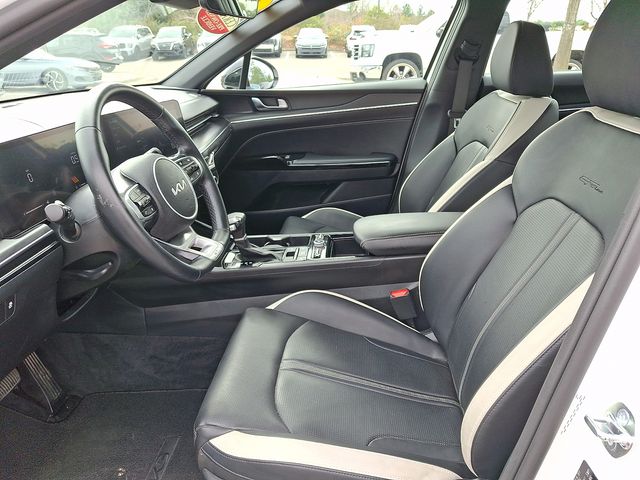Kia Certified Pre-Owned Certified, Navigation System, 18" Alloy wheels, 4-Wheel Disc Brakes, 6 Speakers, ABS brakes, Air Conditioning, AM/FM radio: SiriusXM, Auto High-beam Headlights, Automatic temperature control, Brake assist, Bumpers: body-color, Carpeted Floor Mats, Delay-off headlights, Driver door bin, Driver vanity mirror, Dual front impact airbags, Dual front side impact airbags, EC Mirror w/Homelink, Electronic Stability Control, Emergency communication system: Kia Connect (includes 1 year free trial), Four wheel independent suspension, Front anti-roll bar, Front Bucket Seats, Front Center Armrest, Front dual zone A/C, Front fog lights, Front reading lights, Fully automatic headlights, Heated door mirrors, Heated Front Bucket Seats, Heated front seats, Heated steering wheel, Illuminated entry, Knee airbag, Leather Shift Knob, Leather steering wheel, LED Trunk Light, Low tire pressure warning, Mud Guards, Occupant sensing airbag, Outside temperature display, Overhead airbag, Overhead console, Panic alarm, Passenger door bin, Passenger vanity mirror, Power door mirrors, Power driver seat, Power steering, Power windows, Radio data system, Radio: AM/FM Audio System, Rear anti-roll bar, Rear seat center armrest, Rear side impact airbag, Rear window defroster, Remote keyless entry, Security system, Speed control, Speed-sensing steering, Split folding rear seat, Sport steering wheel, Steering wheel mounted audio controls, Tachometer, Telescoping steering wheel, Tilt steering wheel, Traction control, Trip computer, Turn signal indicator mirrors, Variably intermittent wipers, Wheels: 18" x 7.5J Gloss Black Machined Finish Alloy, Navigation System.