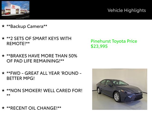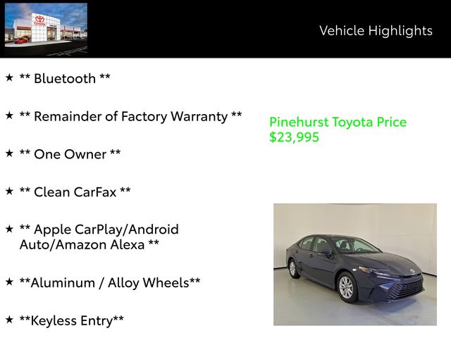 Discover the exceptional value and peace of mind that come with this meticulously maintained 2025 Toyota Camry LE. Schedule a test drive today and experience the difference for yourself. We're confident you'll be impressed by this exceptional vehicle and the exceptional service you'll receive from our team.
